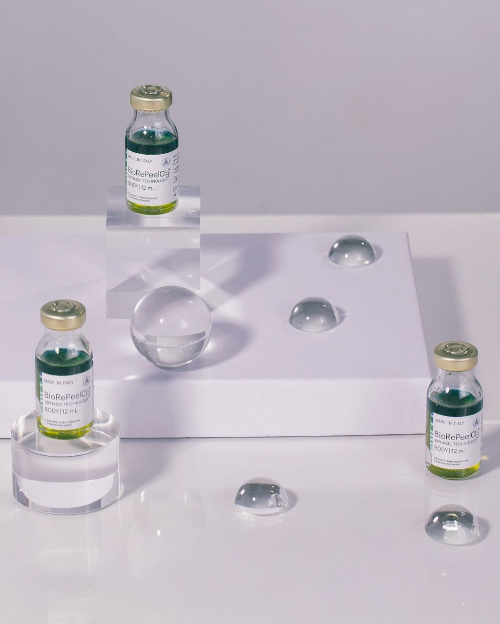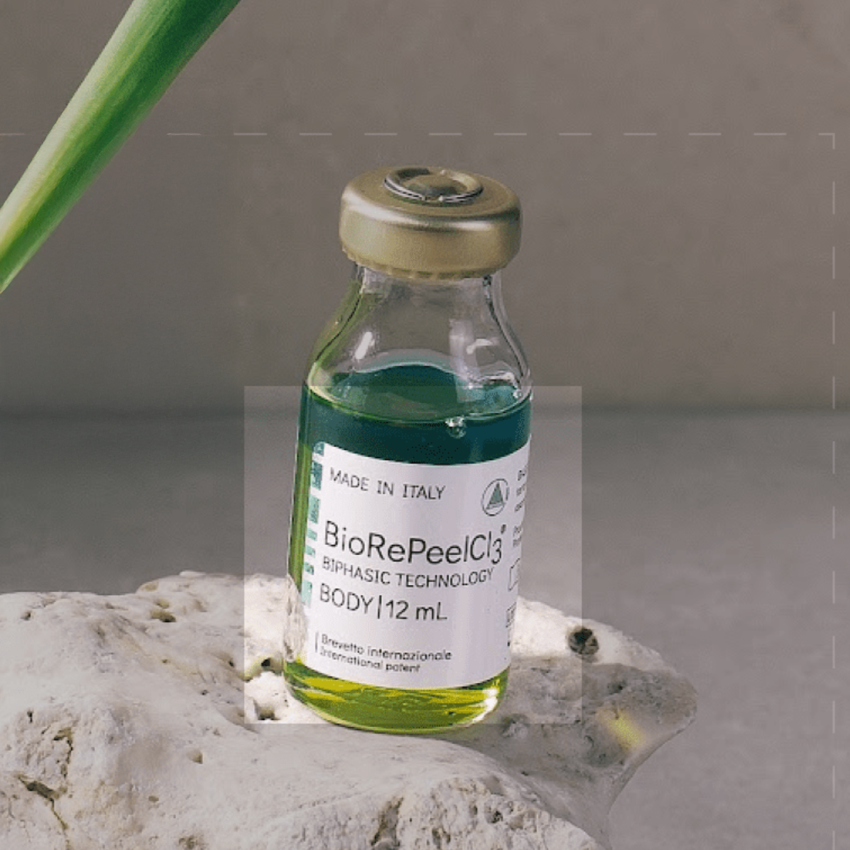 BioRePeelCI3 BODY is an innovative biphasic, medical device with the biostimulating, revitalising and peeling actions indicated for the entire body with a 50% concentration of TCA as the main ingredient.
