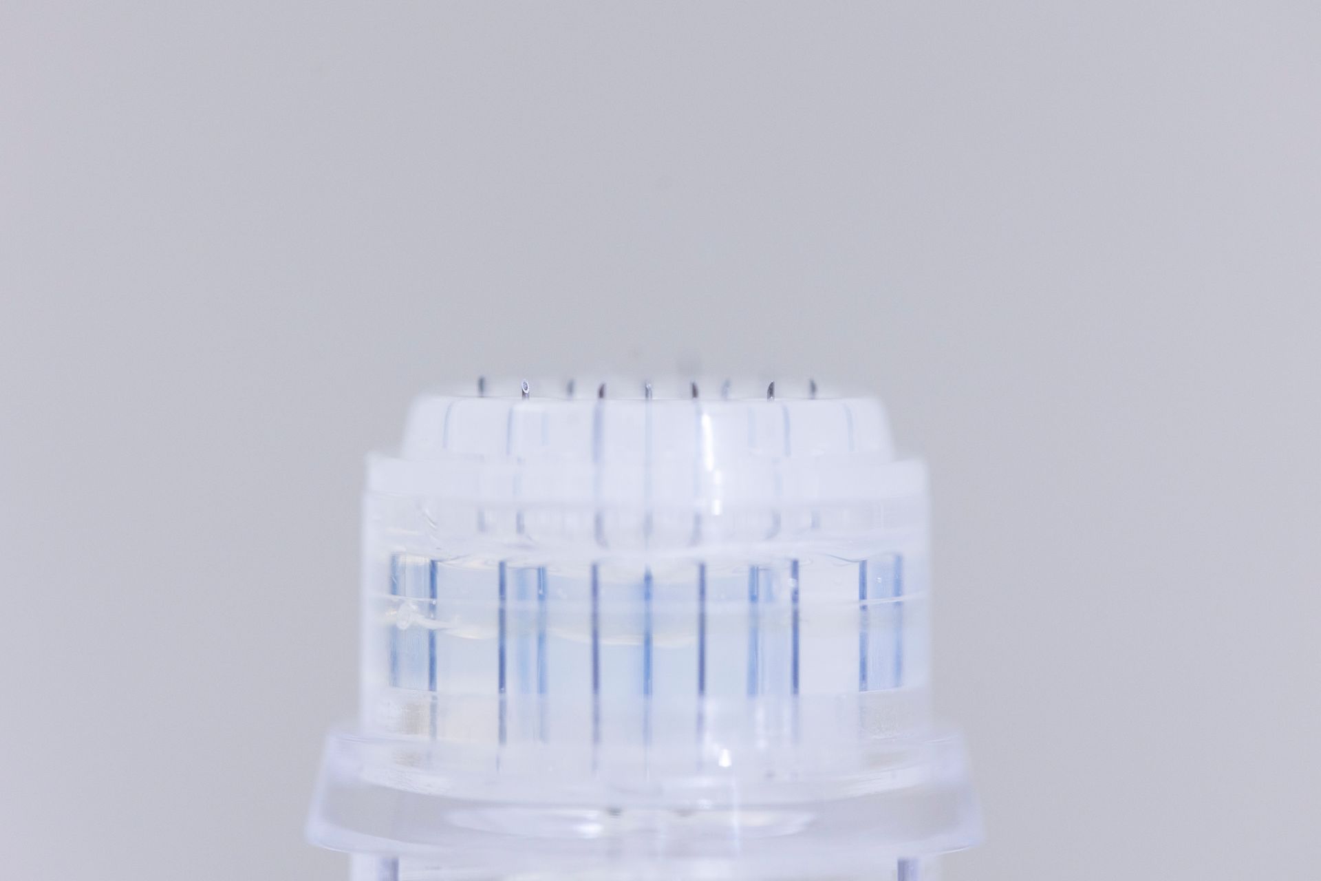 The Glowpin™ needle top is made out of 19 equally spaced needles that facilitate exfoliation and improve the appearance of skin texture, and help diffuse serums into the skin for a more luminous look.