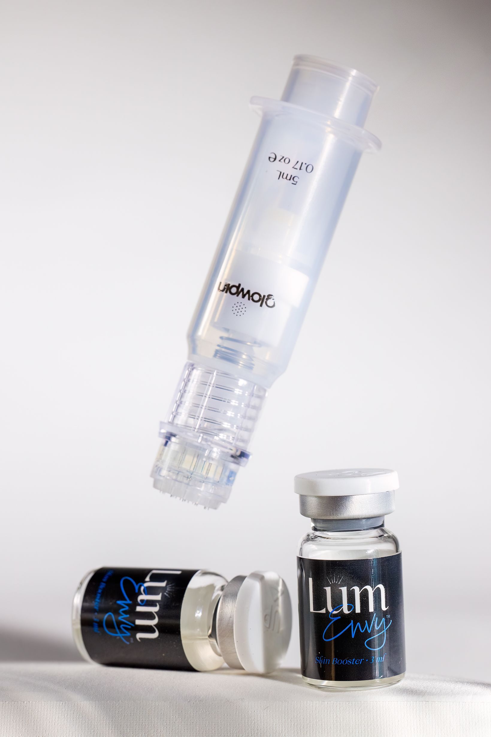 The Glowpin™ by PDO Max is an airless pump that is specifically designed for the application of topical skin boosters to flow easily and effectively. After the desired serum has been inserted into the device, you will then apply it to the skin by pressing the pump to diffuse the serum for optimal absorption.